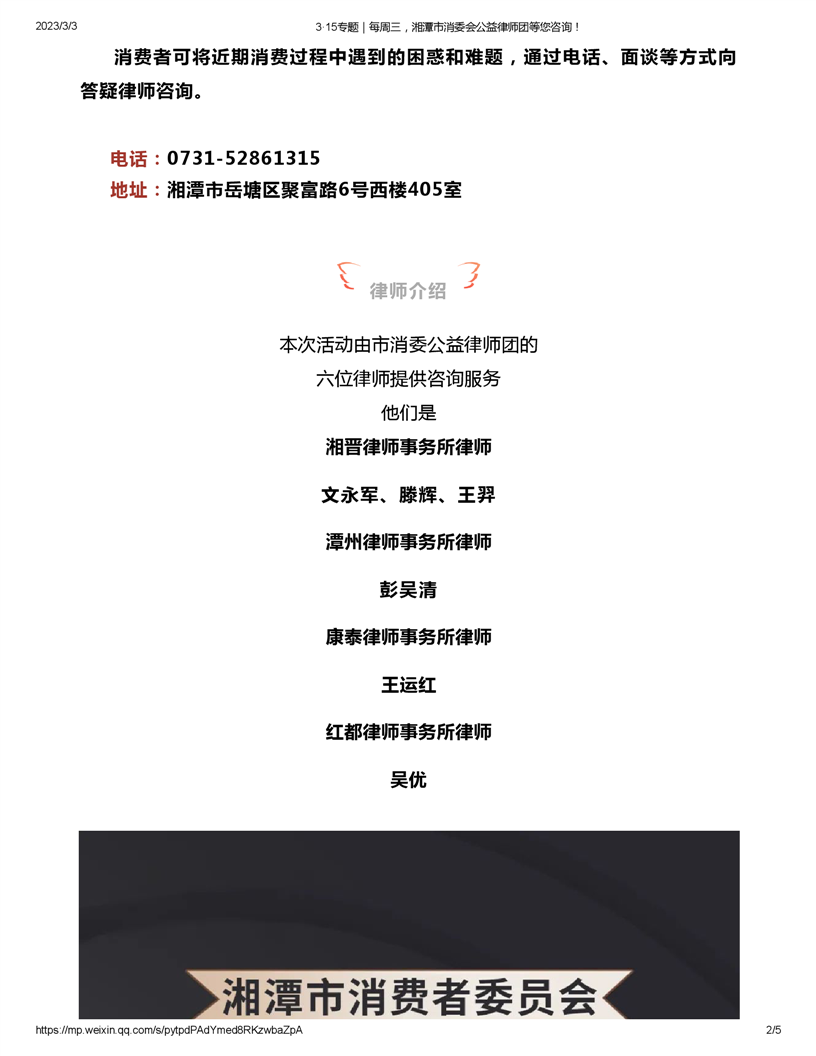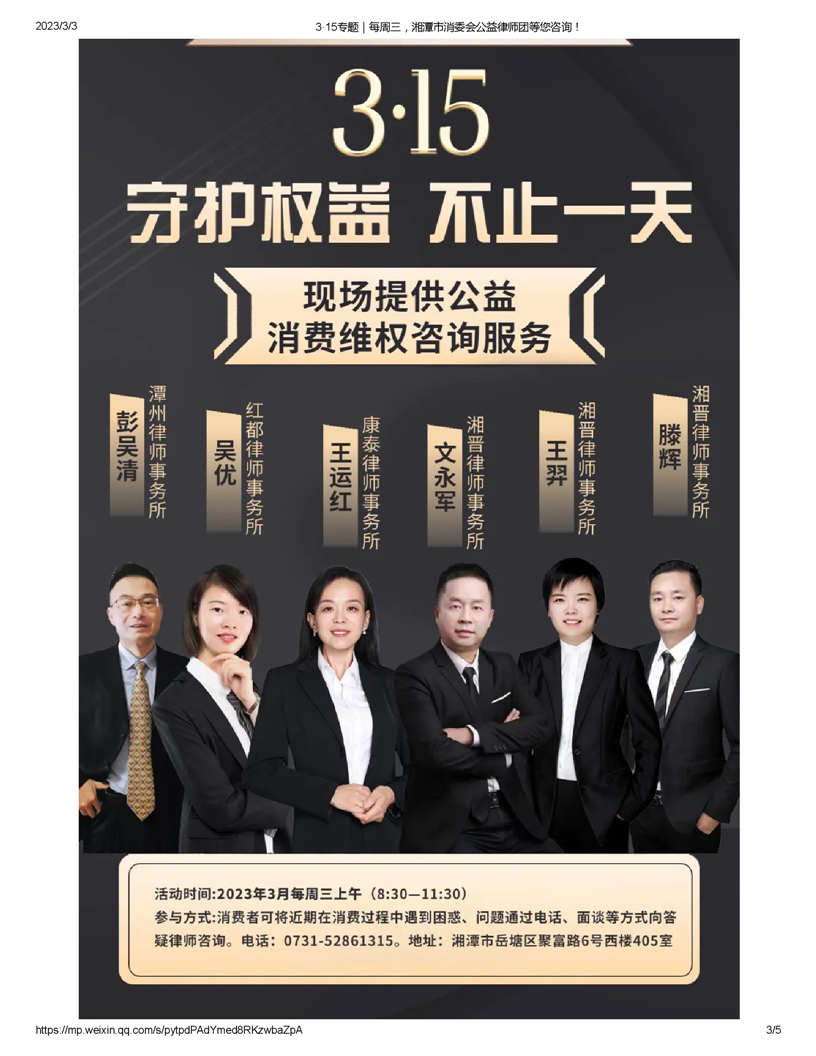 3·15專題|每周三,湘潭市消委會公益律師團等您咨詢!