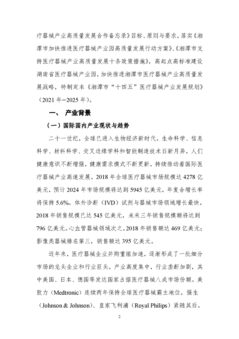 湘潭市“十四五”醫療器械產業發展規劃