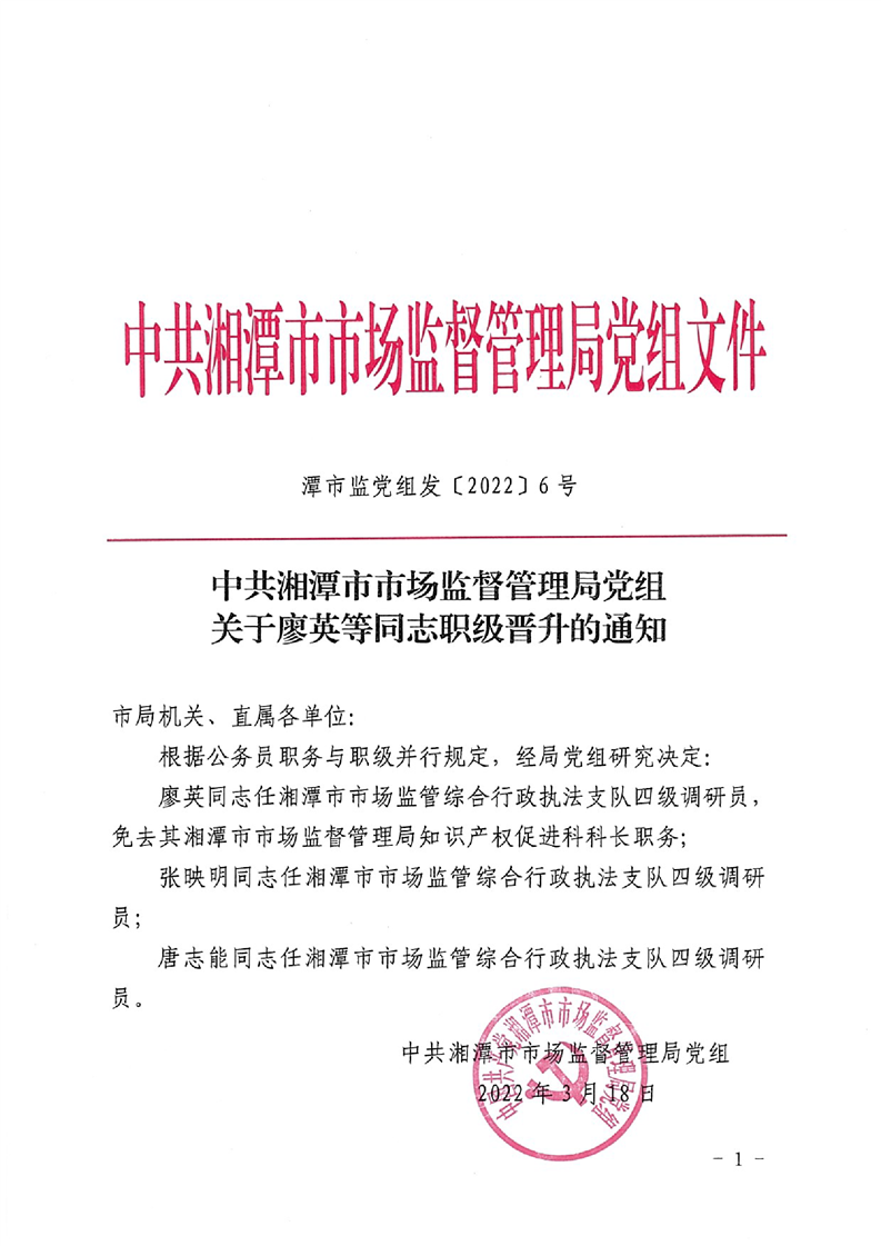 關(guān)于廖英等同志職級(jí)晉升的通知