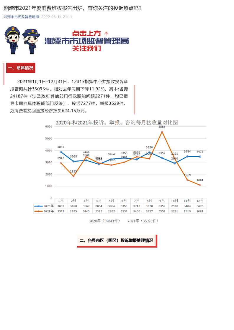 湘潭市2021年度消費維權報告出爐,有你關注的投訴熱點嗎?