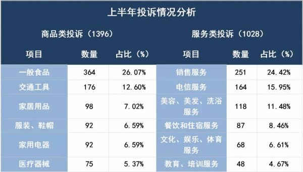 消費者投訴2424件,占總登記量的12.40%。其中商品類投訴1396件,占投訴總量的57.59%;服務類投訴1028件,占投訴總量的42.41%。