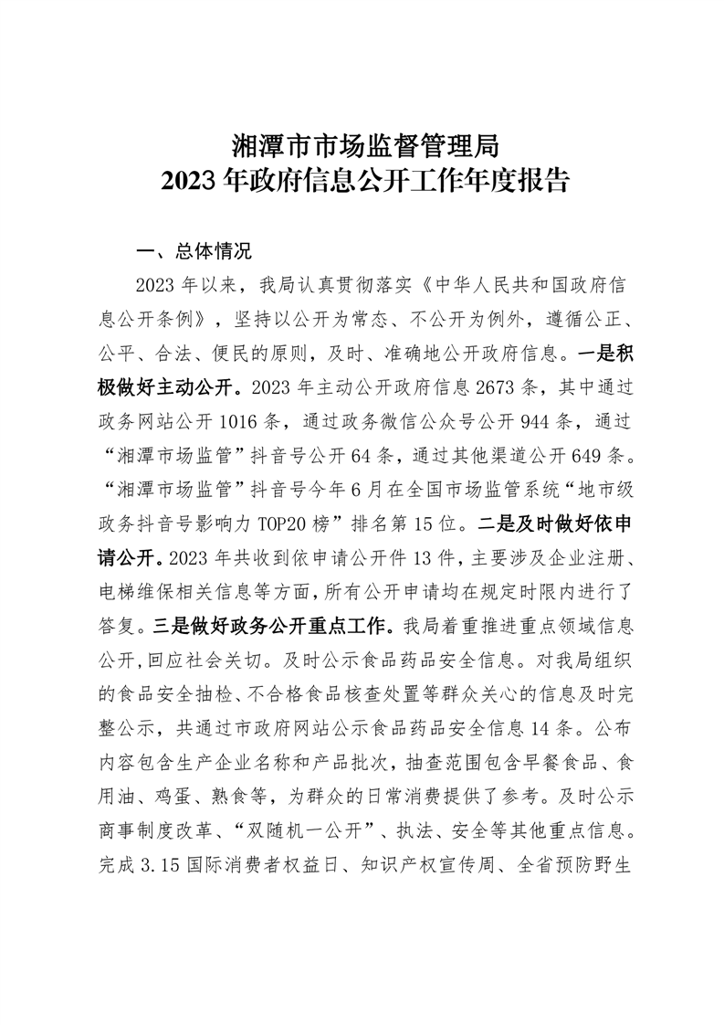 湘潭市市場監(jiān)督管理局 2023年政府信息公開工作年度報(bào)告