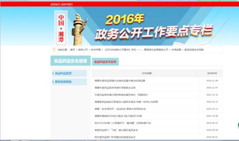 1、做好了政府信息主動公開工作。在湘潭市食品藥品監(jiān)督管理局門戶網(wǎng)站及時發(fā)布更新了工作動態(tài)、辦事指南、政策法規(guī)、人事信息、規(guī)劃計劃、財政信息、行政許可、行政處罰、消費警示、抽檢信息等各類主動公開的信息,做好了市政府門戶網(wǎng)站重點領(lǐng)域信息公開欄目、政務(wù)公開工作要點市場監(jiān)管和民生改善欄目食品藥品安全信息公示。