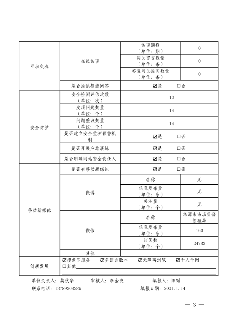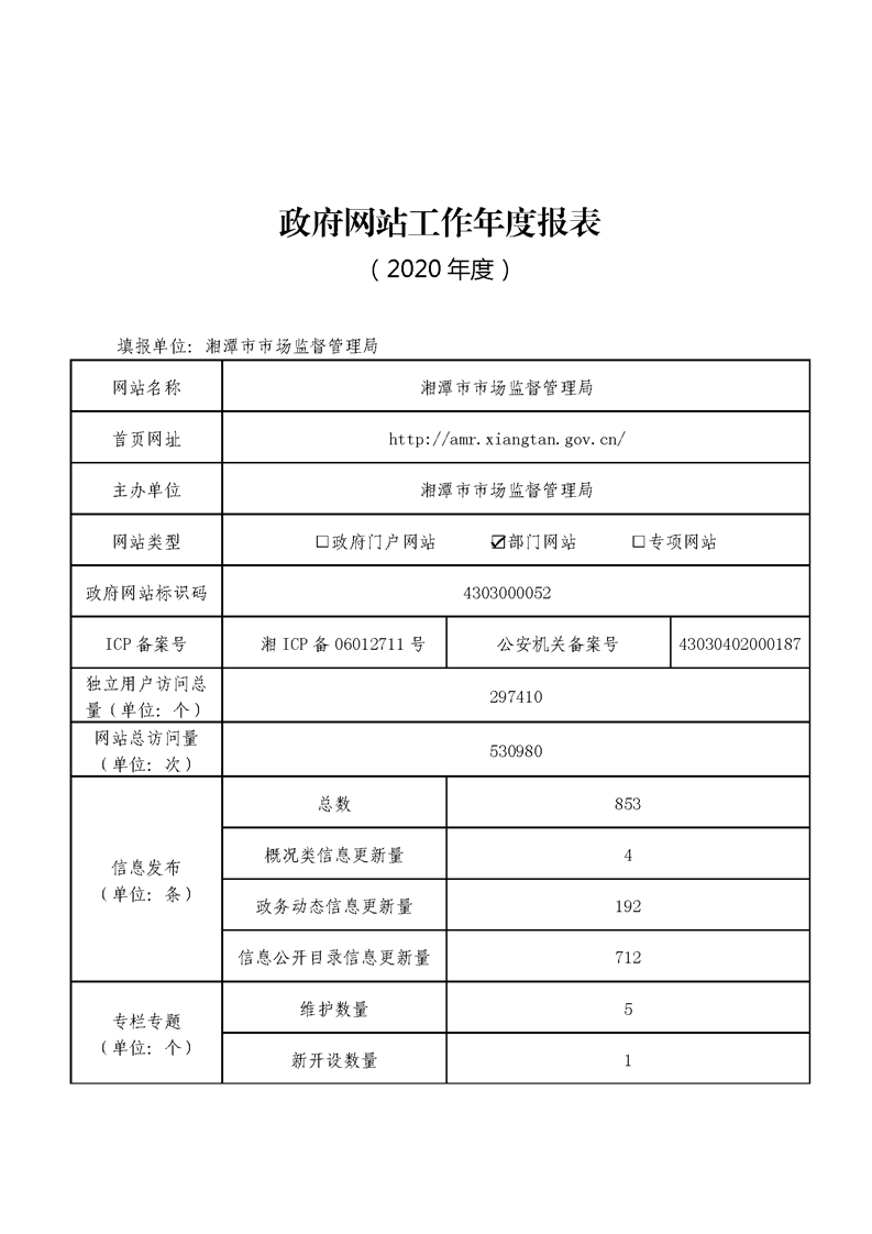湘潭市市場(chǎng)監(jiān)督管理局政府網(wǎng)站工作年度報(bào)表(2020年度)