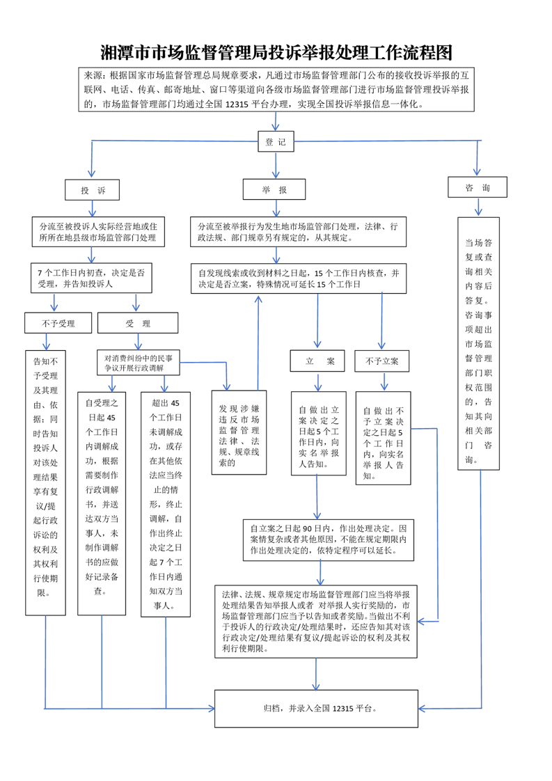湘潭市市場監督管理局投訴舉報處理工作流程圖