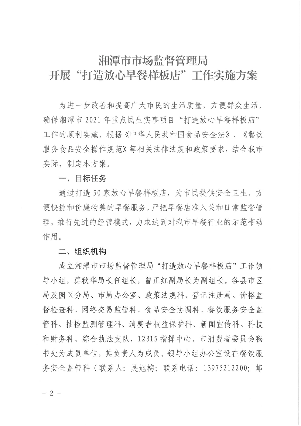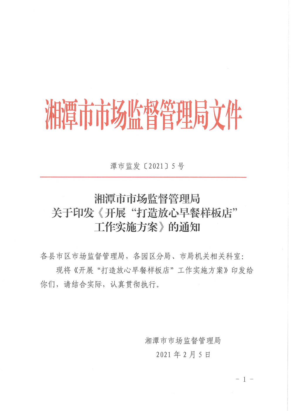 湘潭市市場監督管理局關于印發《開展“打造放心早餐樣板店” 工作實施方案》的通知